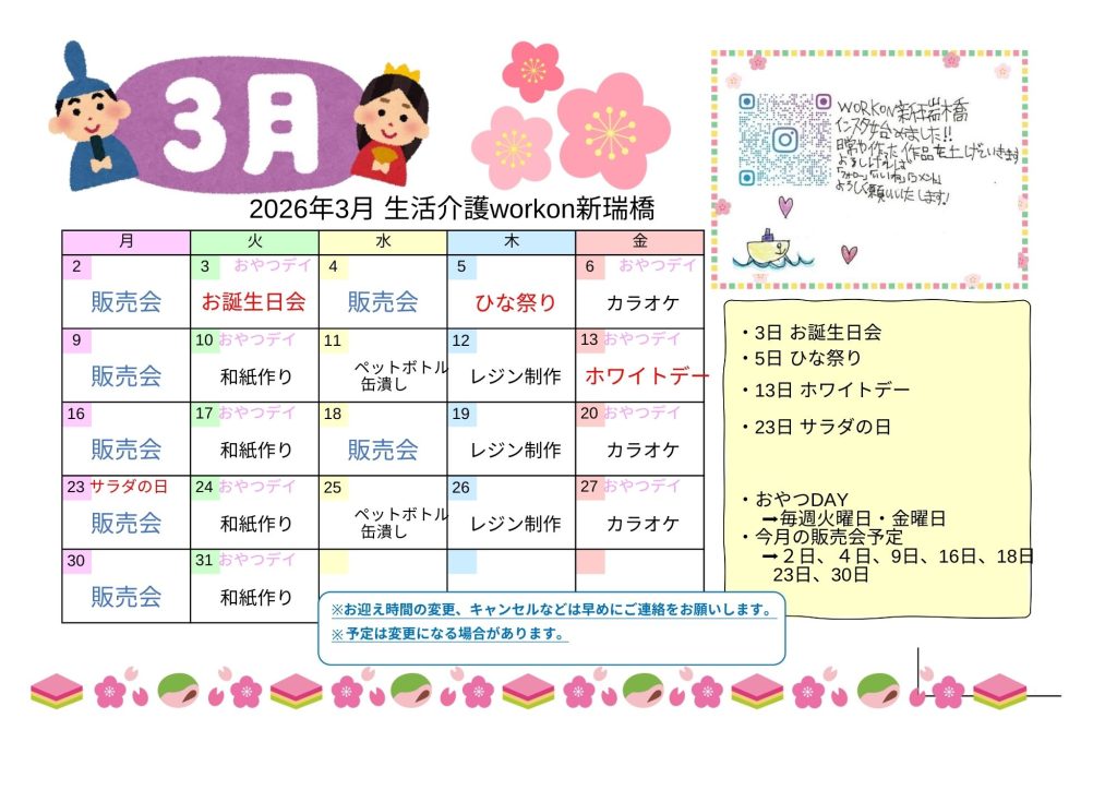 3月 月間スケジュール