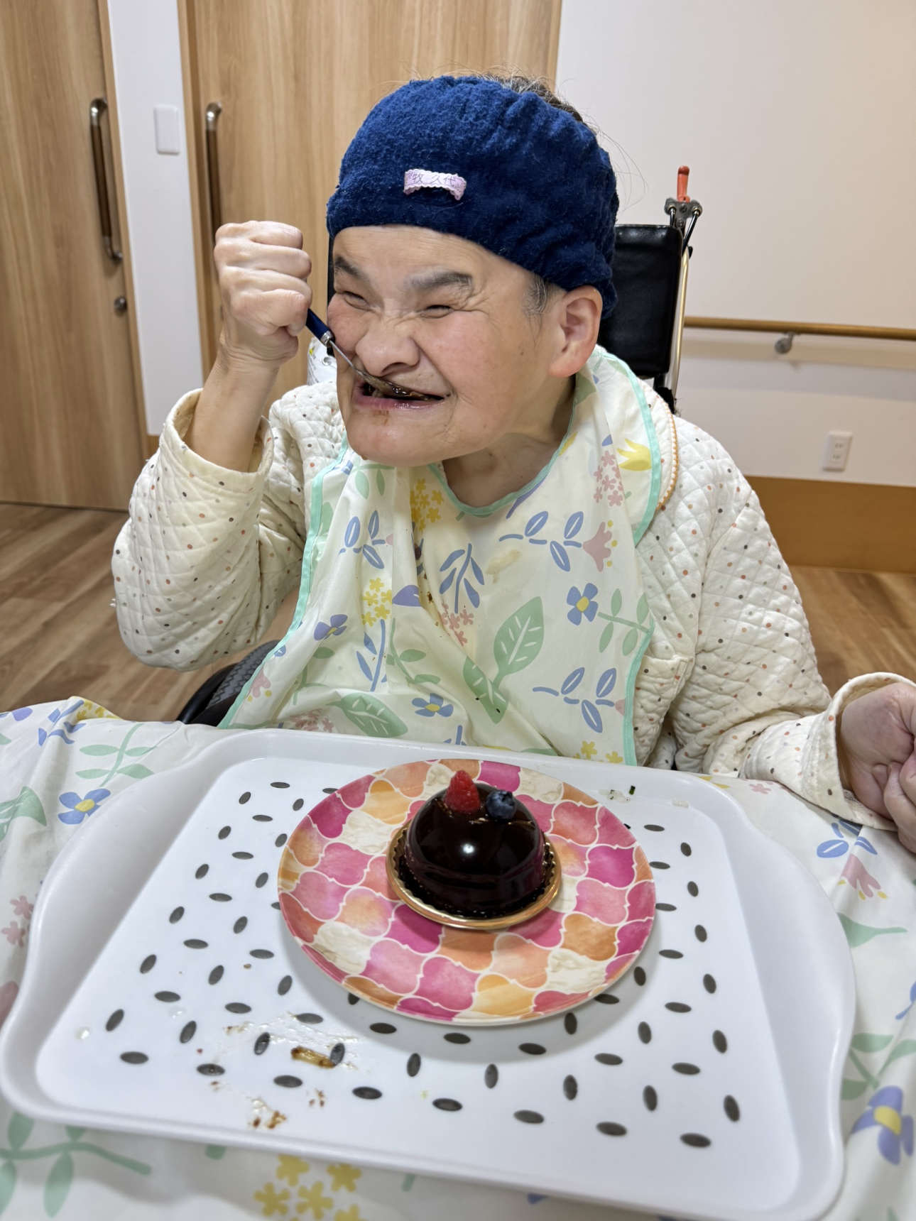 綺麗に飾り付けられたケーキを見て、「誰が作ったの?すごいね、ありがとう!」と、スタッフへ温かい感謝の言葉をかけてくださいました。